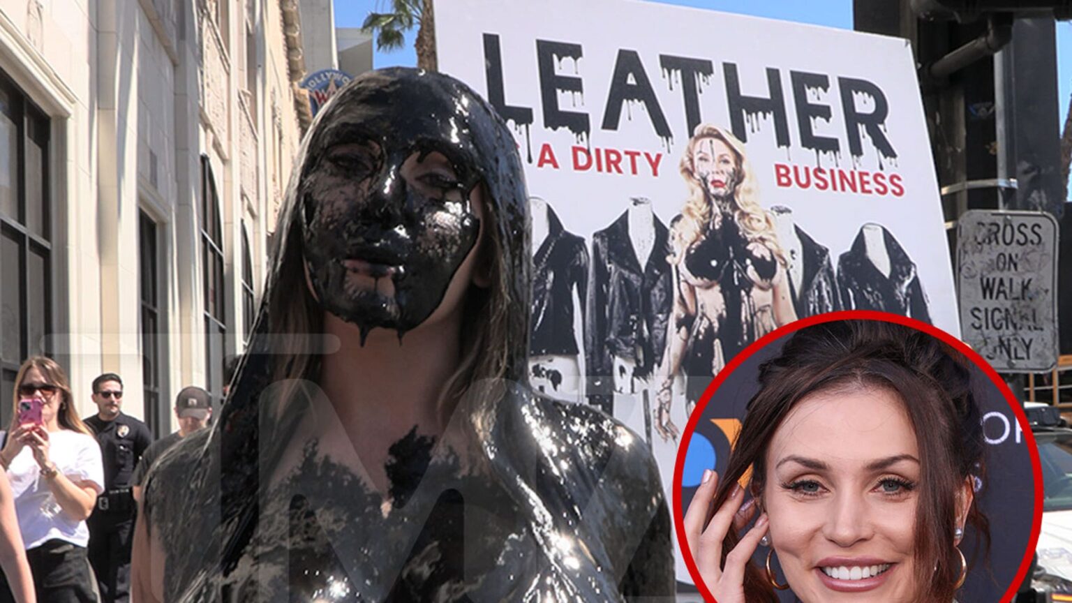 Check it out — Courtney stripped down to a bikini on Hollywood Boulevard on Thursday before the sticky black syrup was dramatically poured all over her … telling TMZ later the messy stunt was still nothing compared to what cows endure.