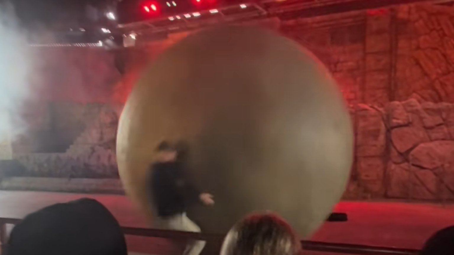 An adventurous staffer rushed forward to try and stop the boulder … but, he ended up knocked down to the ground and bloody.