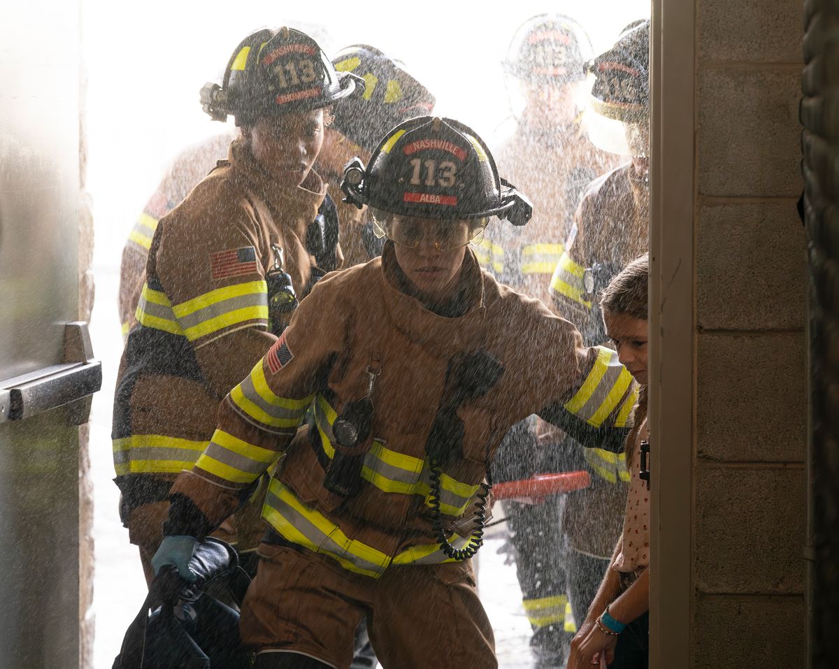The production also relies on real experts to maintain authenticity. “We have great advisors. We have firefighters, medics, doctors, nurses. A lot of our background actors are actual firefighters from Nashville, and they tell us exactly how they would approach situations.”