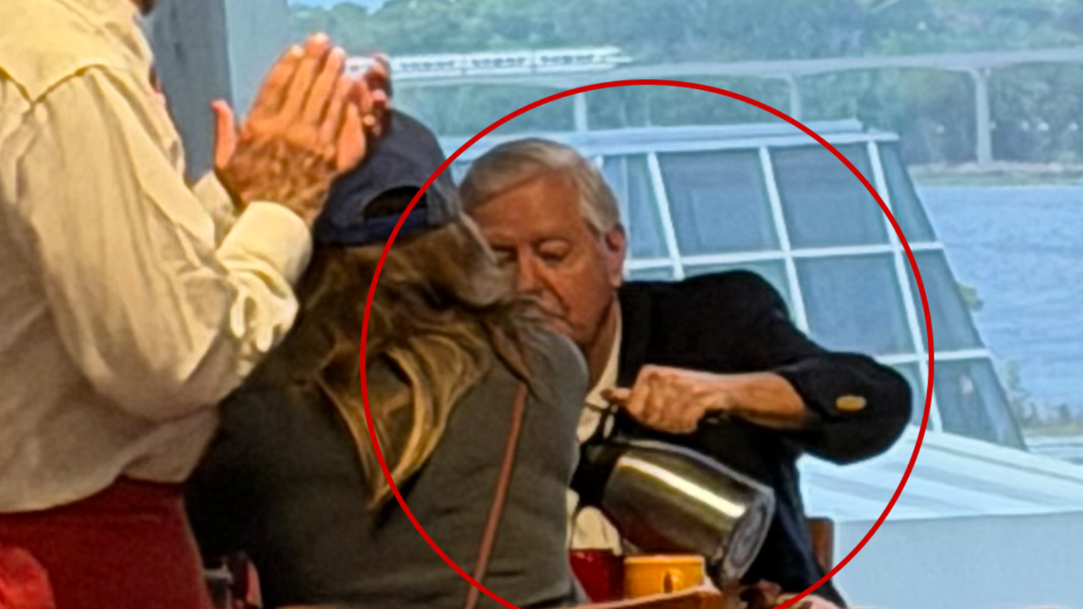 We’re told Lindsey talked to the staff, who tucked him away in a back table. He went to the buffet line — much shorter than the TSA lines around the country — grabbed some grub, and chowed down.